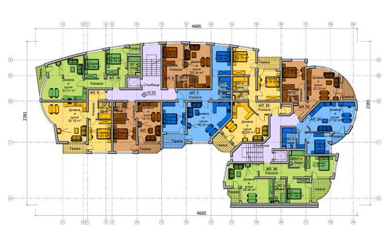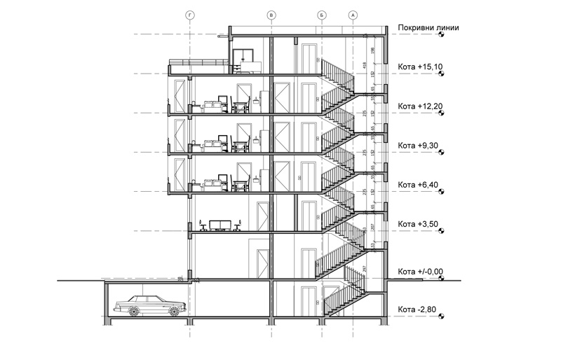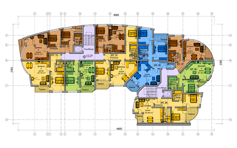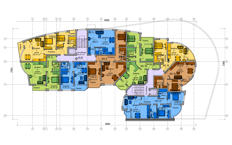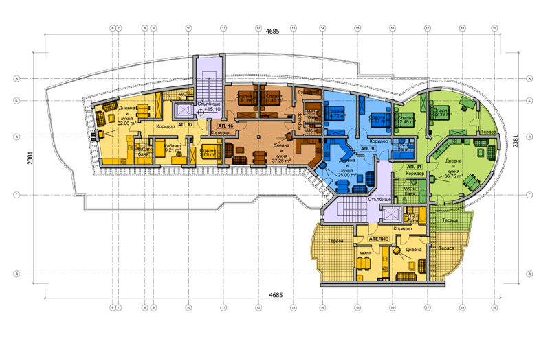 - апартаменти - двустайни и тристайни, с площ от 100 до 145 кв.м.;