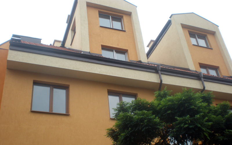 - Строителна система – монолитна, червена тухла, ефективна външна топлоизолация и декоративна минерална мазилка "Baumit".